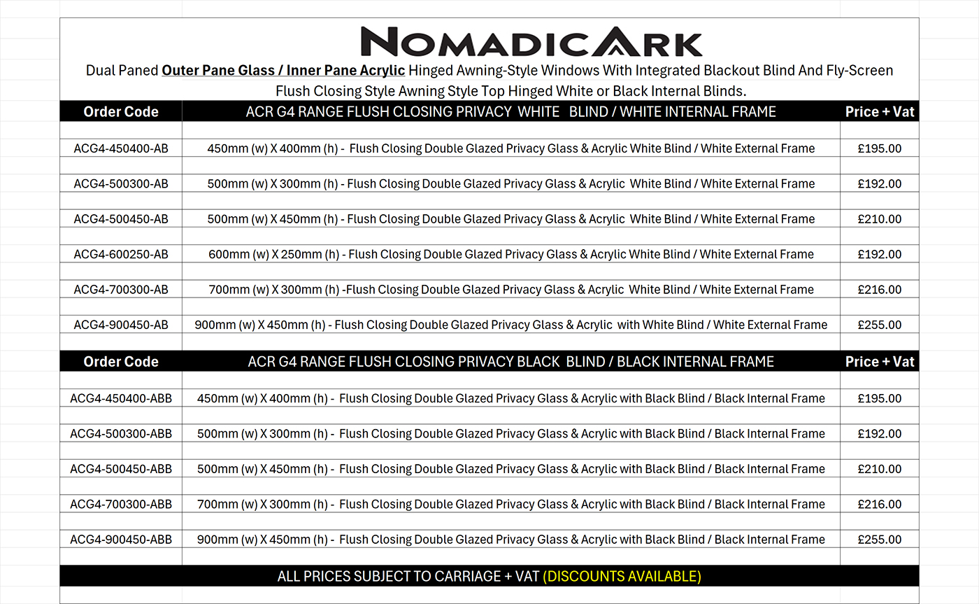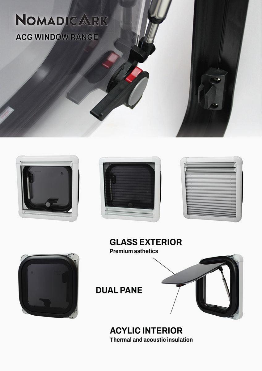 Dual Paned Acrylic Awning-Style Windows - With Integrated Blackout Blind And Fly-Screen