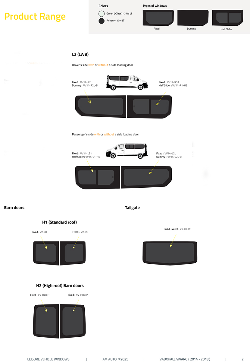 These Windows are available in Privacy Glass or Standard Light Green Glass (Clear)