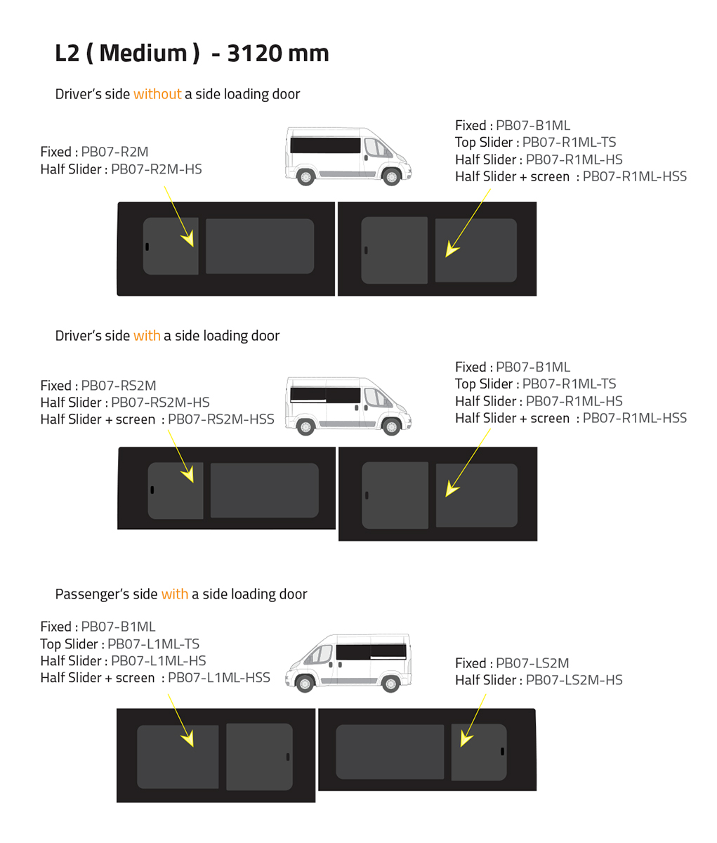 Half Sliding or Fixed options either Privacy Glass or Standard Light Green (Clear)