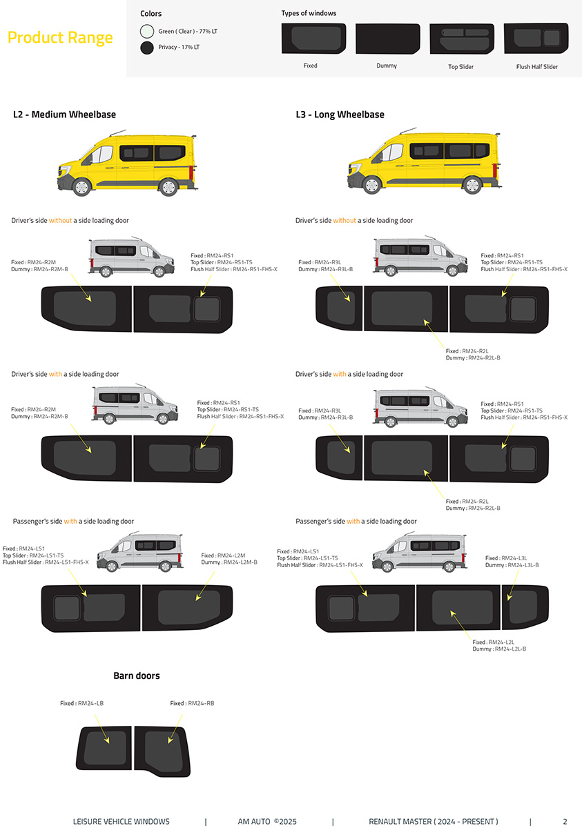 These Windows are available in Privacy Glass or Standard Light Green Glass (Clear)
